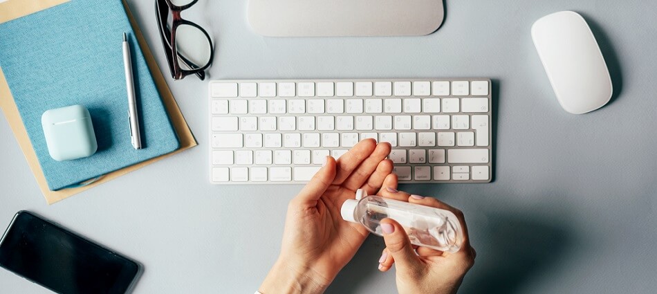 En plus de vous laver régulièrement les mains avec du savon pendant au moins 20 secondes, demandez à votre employeur s’il est possible de mettre à disposition du gel désinfectant au bureau, si ce n’est pas déjà fait. Pour vous protéger, pensez aussi à désinfecter régulièrement votre clavier, votre souris et votre téléphone. C’est une habitude qu’il aurait déjà fallu prendre avant le coronavirus, mais il n’est jamais trop tard pour s’y mettre.